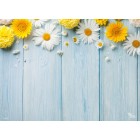 Sehr geschmackvolle Unterlage mit Blumenmotiv auf hellblauen Holz. Sehr schön kombinierbar mit Frühlings- oder Sommerdeko auf Deinem Tisch!
