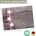 Drei weiße Sterne auf einem rot-karrierten Band. Dieses Tischset sieht wundervoll auf dem gedeckten Weihnachtstisch aus und zaubert gewiss ein Lächeln in jedes Gesicht.